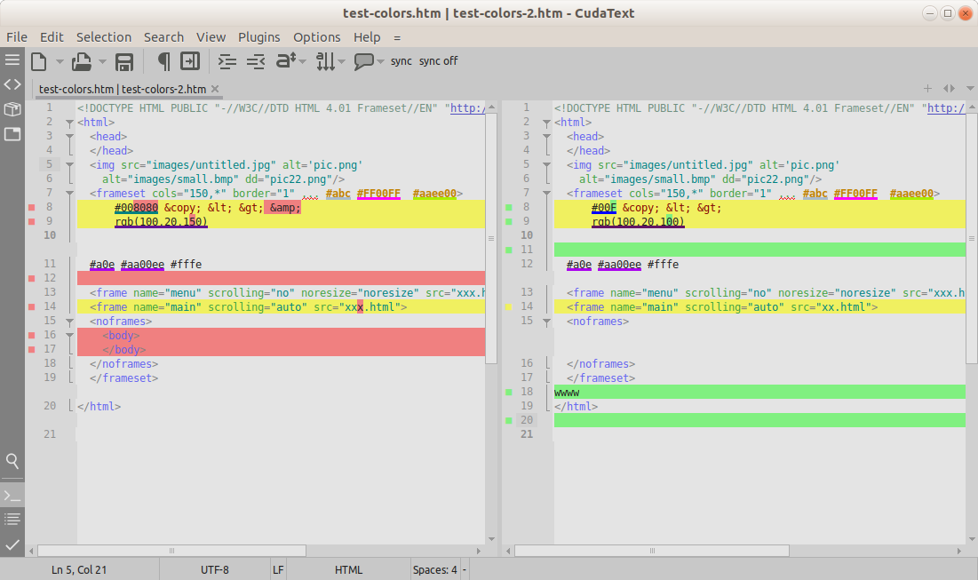 Plugin uses new API (CudaText 1.74+) and shows 2 files in a single tab.
