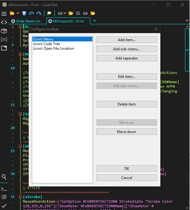 Toggle Comments (Although I specified an icon, it has displayed on the Toggle Minimap button.)
