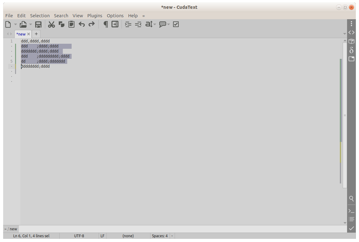 But just as example for the unexpected behavior ... if you mark the whole text and then align using ";" as the separator character then the last line ist skipped ...