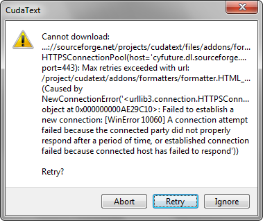 А - выбрав другое "зеркало" при ручной скачке на https://sourceforge.net/projects/cudatext/files/addons/
