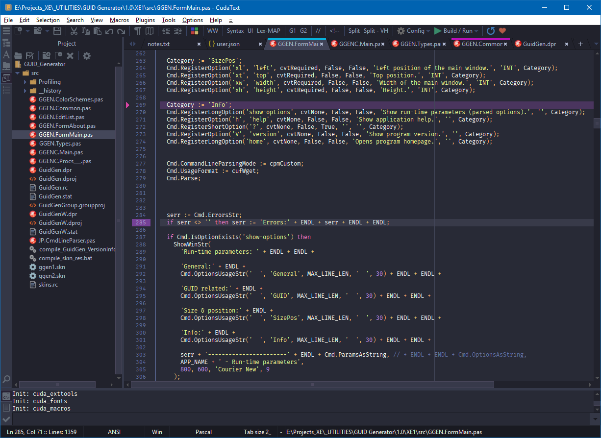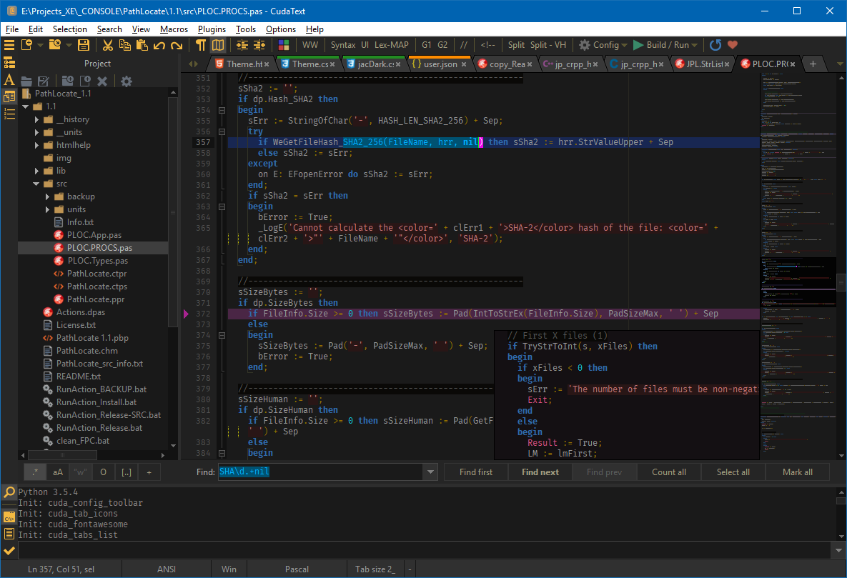 2 screenshots on Windows. from Pazera Software - site https://www.pazera-software.com/cudatext/ .