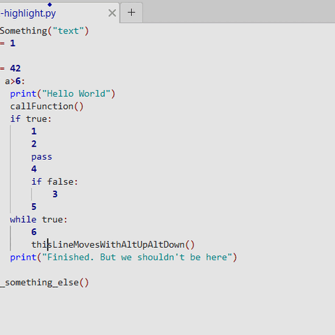 как сделать перемещение строк вверх-вниз (по умолчанию это делают клавиши Alt-Up, Alt-Down) с учетом синтаксиса языка (вообще или Python / или любой другой основанной на отступах разметки).
