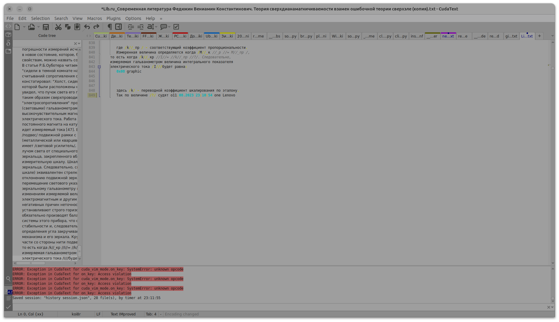 ERROR: Exception in CudaText for ins_default: List index (849) out of bounds