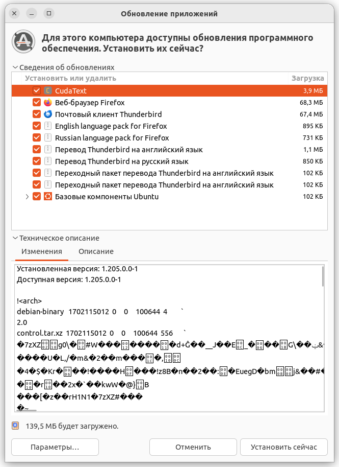 Уже установлен пакет cudatext самой новой версии (1.205.0.0-1).