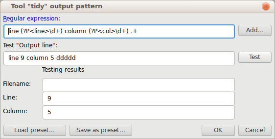 ...часа через полтора (ну я совсем не отношу себя к адептам Церкви Регулярных Выражений) я-таки научил External Tools получать из строкиимя файла и номер строки. Чему был несказанно рад!
