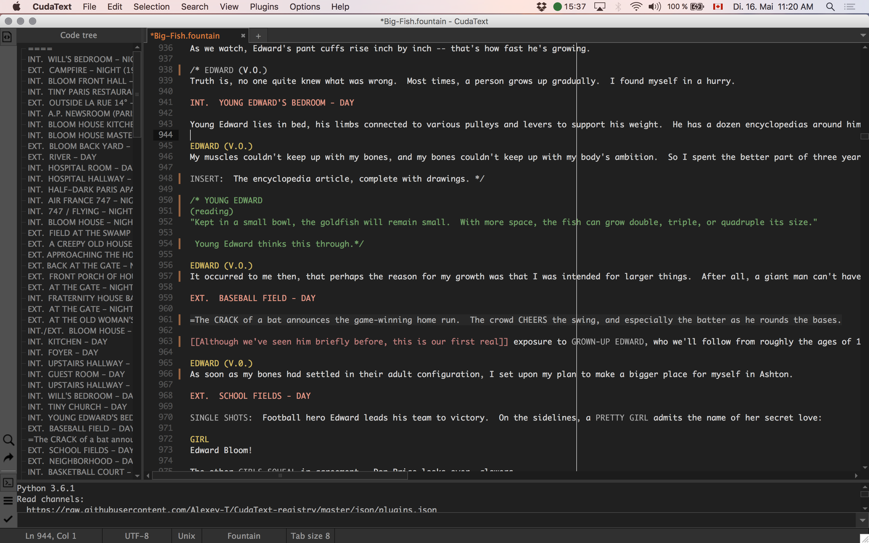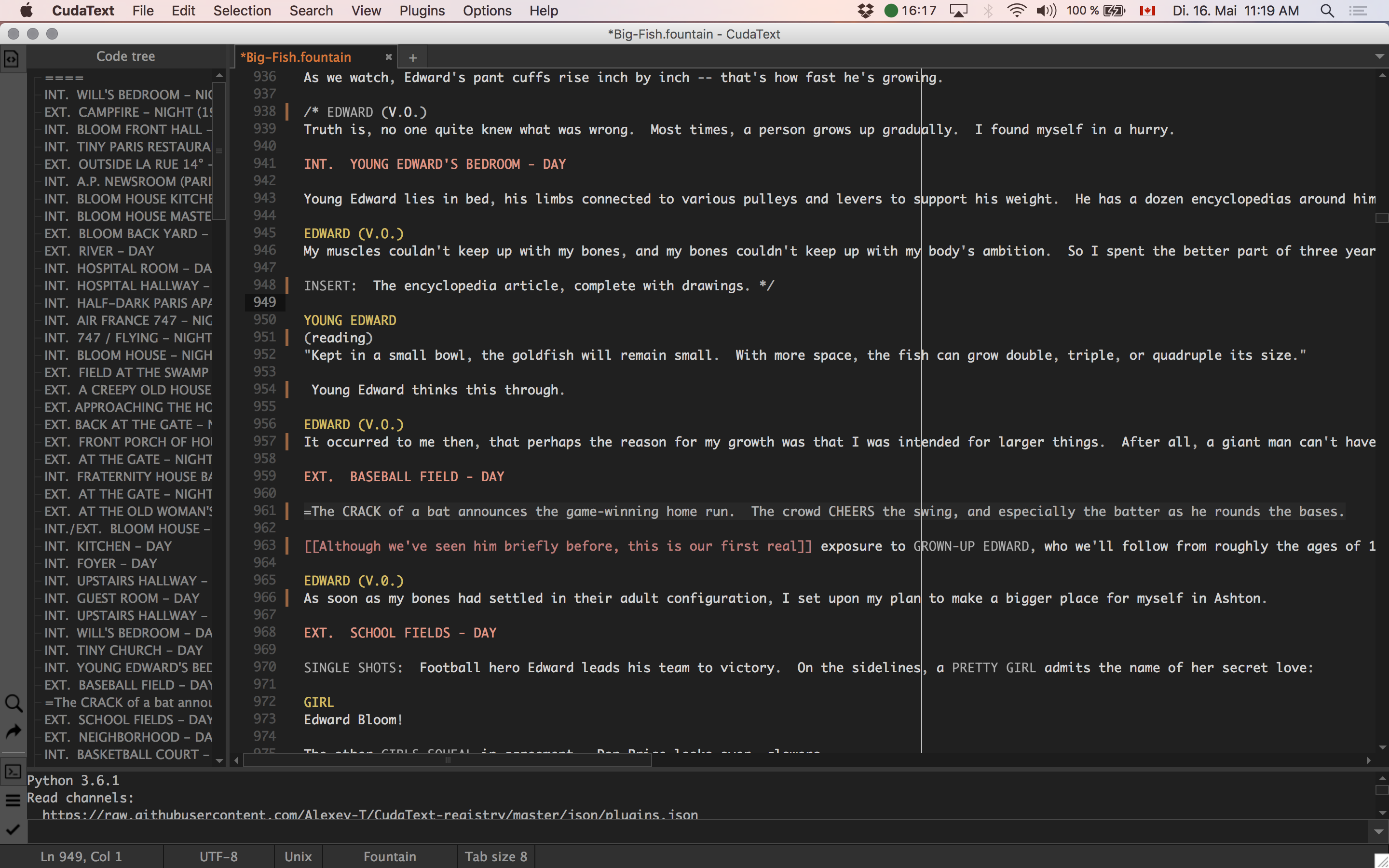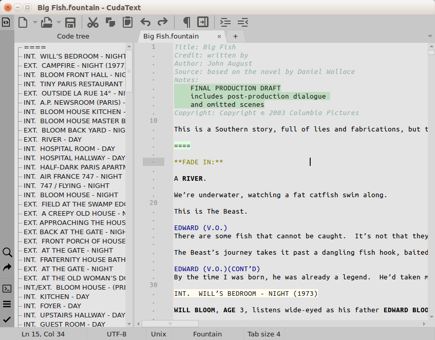 This is language for writing screenwritings.