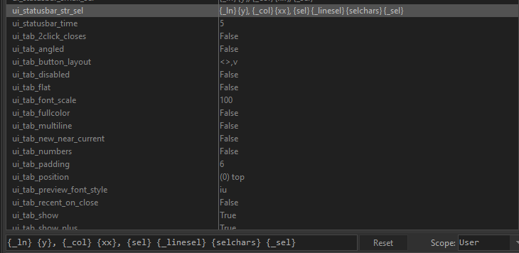 "ui_statusbar_str_sel": "{_ln} {y}, {_col} {xx}, {sel} {_linesel}",