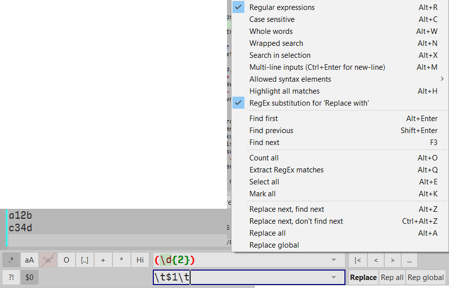 I would like to add tab before and after the digital number, like
